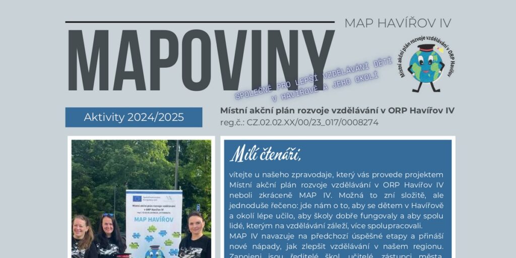 Právě vyšlo nové číslo zpravodaje, ve kterém vám přinášíme novinky z projektu Místní akční plán rozvoje vzdělávání v ORP Havířov IV neboli zkráceně